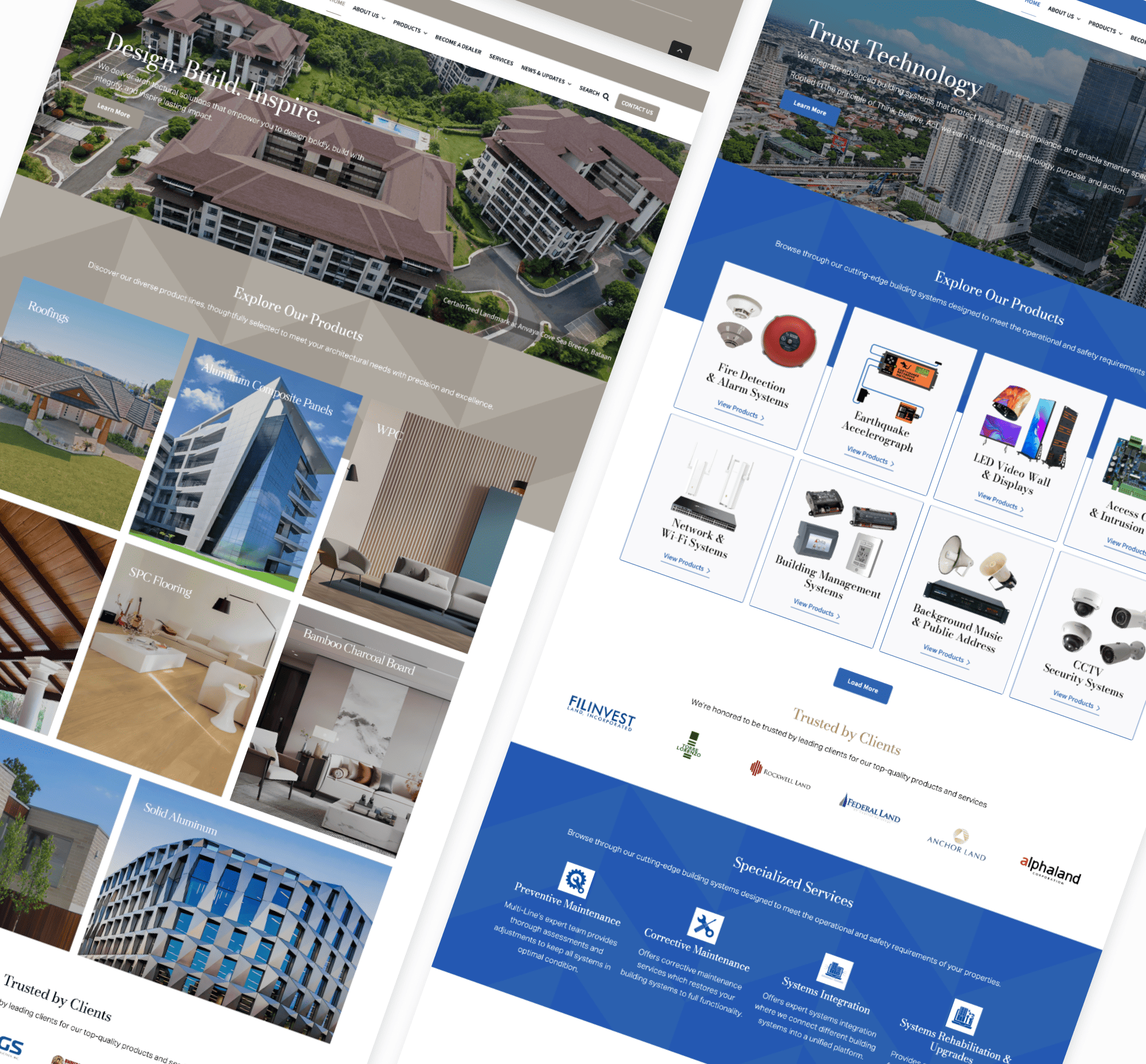Filipinas Multi-Line Corporation serves as the parent company of MSC and MBI, connecting innovation, service, and quality under one brand. The website was created to present Multi-Line as a trusted name in architectural and building solutions, providing users with clear navigation between its subsidiaries